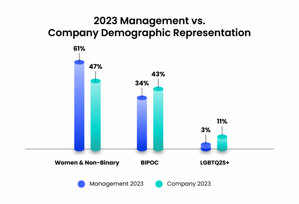 We did, however, note a decrease in LGBTQ2S+ managers over the past year. Representation of LGBTQ2S+ in leadership is important to Loopio, and as we continue to grow in 2024 and beyond, we hope to see an improvement in this demographic group.